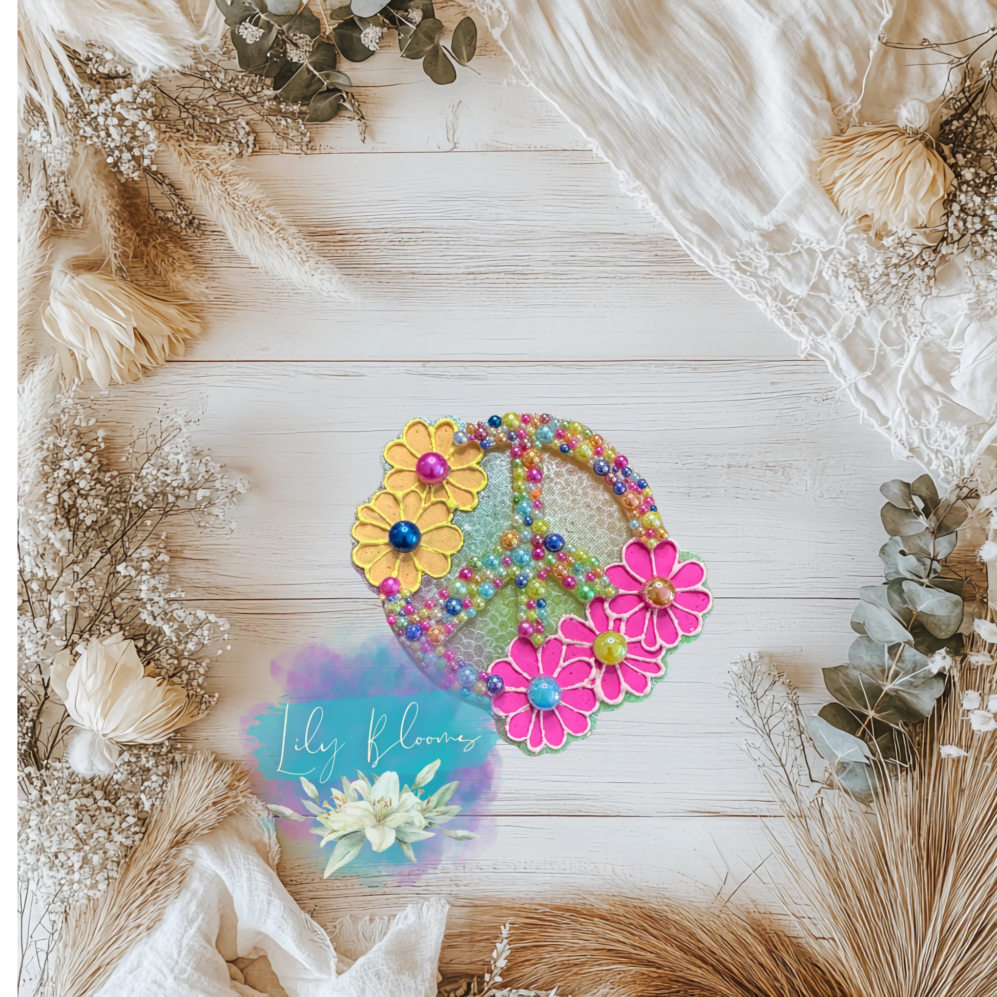 Pearled, peace sign